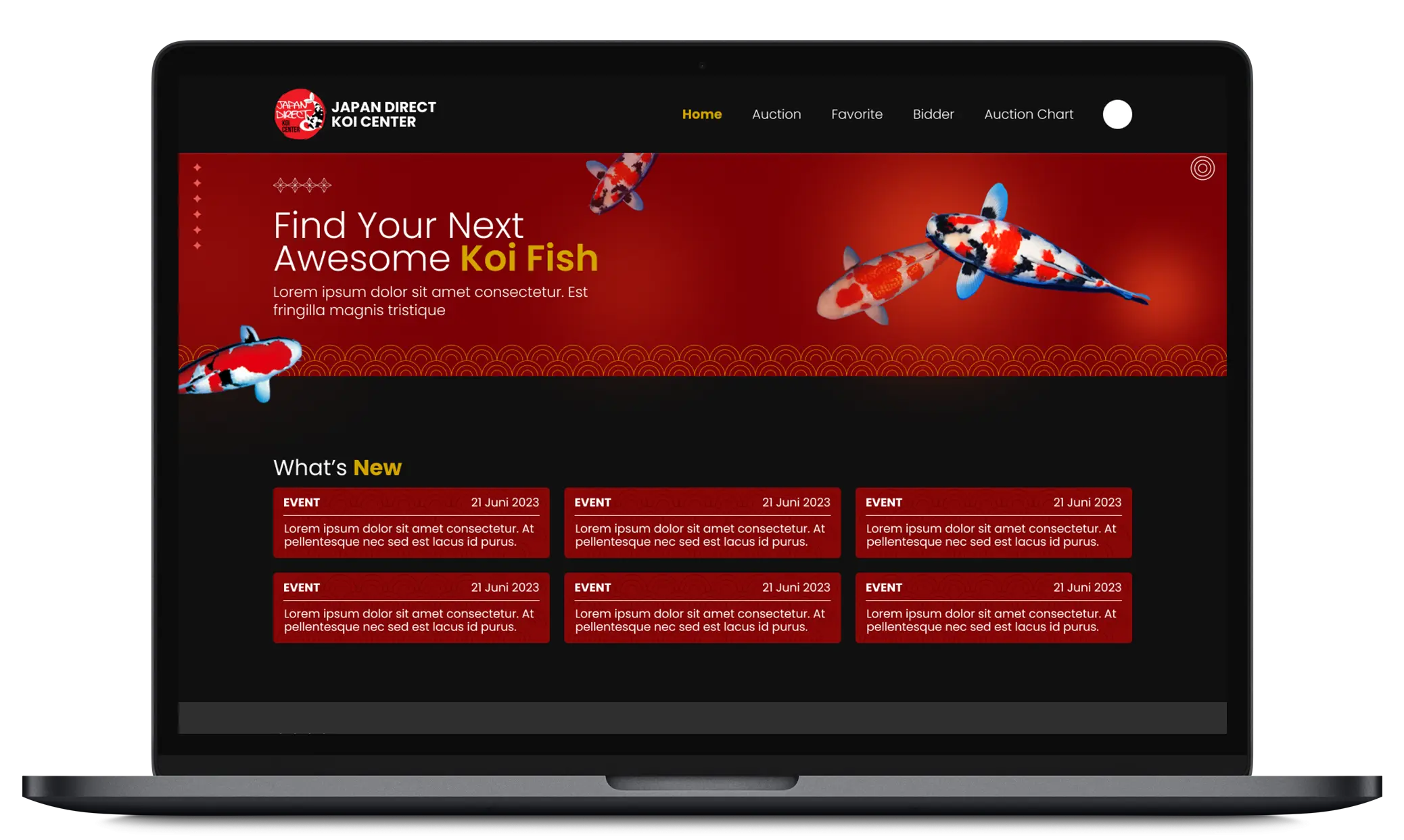 JD KOI CENTER Auction adalah situs lelang yang dirancang untuk memudahkan penjual dan pembeli alat perikanan dalam mengikuti proses lelang secara online. Dengan fitur yang mudah digunakan, pengguna dapat menjual dan menawarkan harga barang secara online kepada konsumen tanpa batas waktu dan tempat. Dari alat perawatan hingga bahan perikanan, semuanya dapat diakses dengan satu klik. Pengalaman lelang yang nyaman, cepat, dan aman hanya ada di JD KOI CENTER Auction.