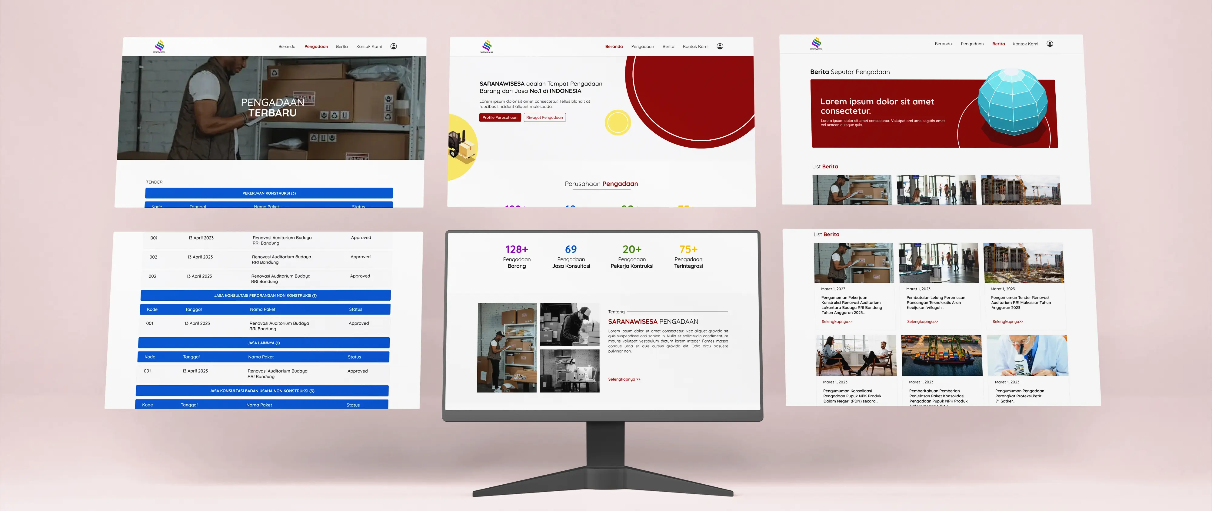A webpage that provides information about the Saranawiwsesa company profile and a site that offers access to follow activities related to the procurement of goods and services online